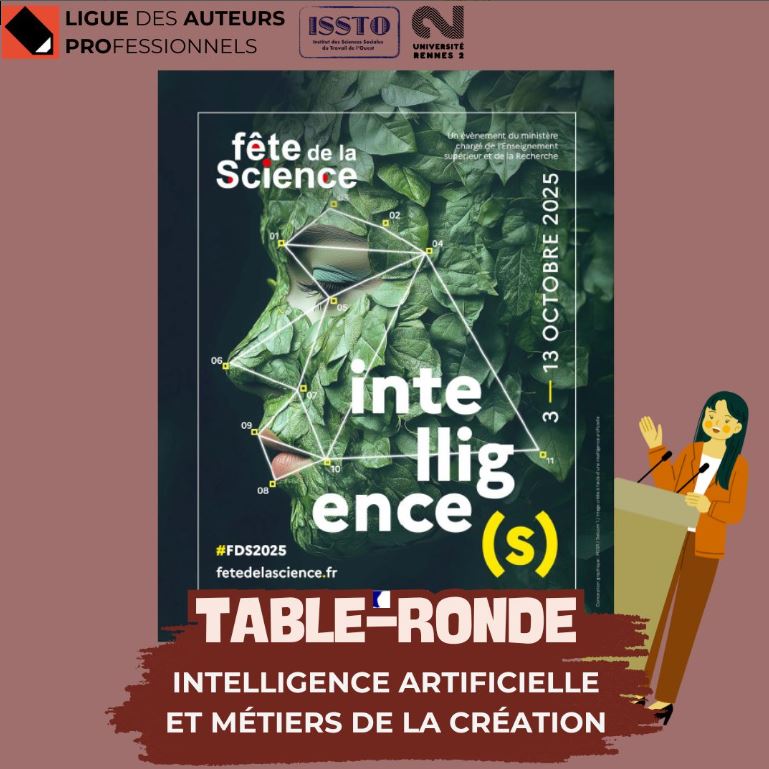 Dans le cadre de la Fête de la Science, la directrice générale de la Ligue, Stéphanie LE CAM, était aux côtés d’Alexandra FRESSE-ELIAZORD, autrice ; de Xavier PERSON, directeur de l’agence régionale Livre et lecture en Bretagne ; de Romain CHAMPALAUNE, de Films en Bretagne ; et de Samule ARNOUX, directeur de l’association Electroni[k], dans la table-ronde « Intelligence artificielle et métiers de la création ».
