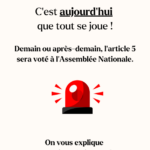 DEMAIN OU APRÈS-DEMAIN, L’ARTICLE 5 SERA VOTÉ À L’ASSEMBLÉE NATIONALE. On vous explique comment agir en une minute, top chrono. Après deux semaines de rendez-vous, de travail juridique et d’interpellations… nos amendements seront portés demain au vote de l'Assemblée Nationale. Le vote qui s’annonce sera historique. Vos interpellations fonctionnent. Oui, […] Continuer la lecture