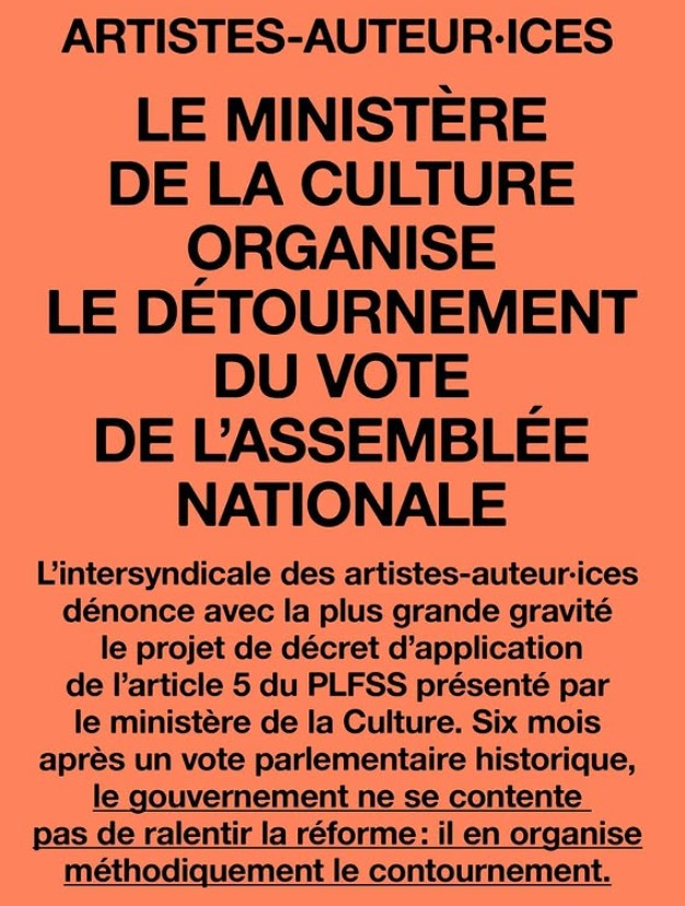 Nous appelons l’ensemble des artistes-auteur·ices à se tenir prêts pour une nouvelle mobilisation.