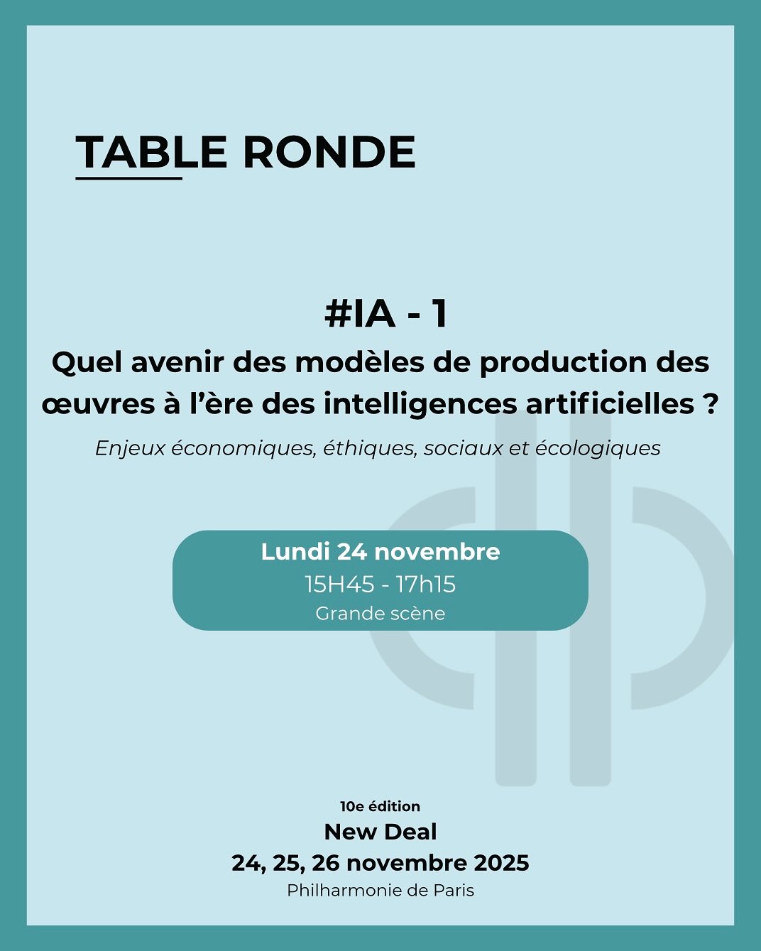 Dans un contexte de profondes mutations où l’intelligence artificielle redéfinit les modes de production artistique, cette table ronde organisée le lundi 24 novembre 2025 a abordé les risques de standardisation des contenus, les biais des systèmes d’IA, la dépendance accrue aux grandes plateformes technologiques ainsi que les enjeux de régulation, d’équité d’accès à ces outils et de préservation de la diversité artistique, notamment pour les acteurs plus fragiles que sont les structures culturelles.